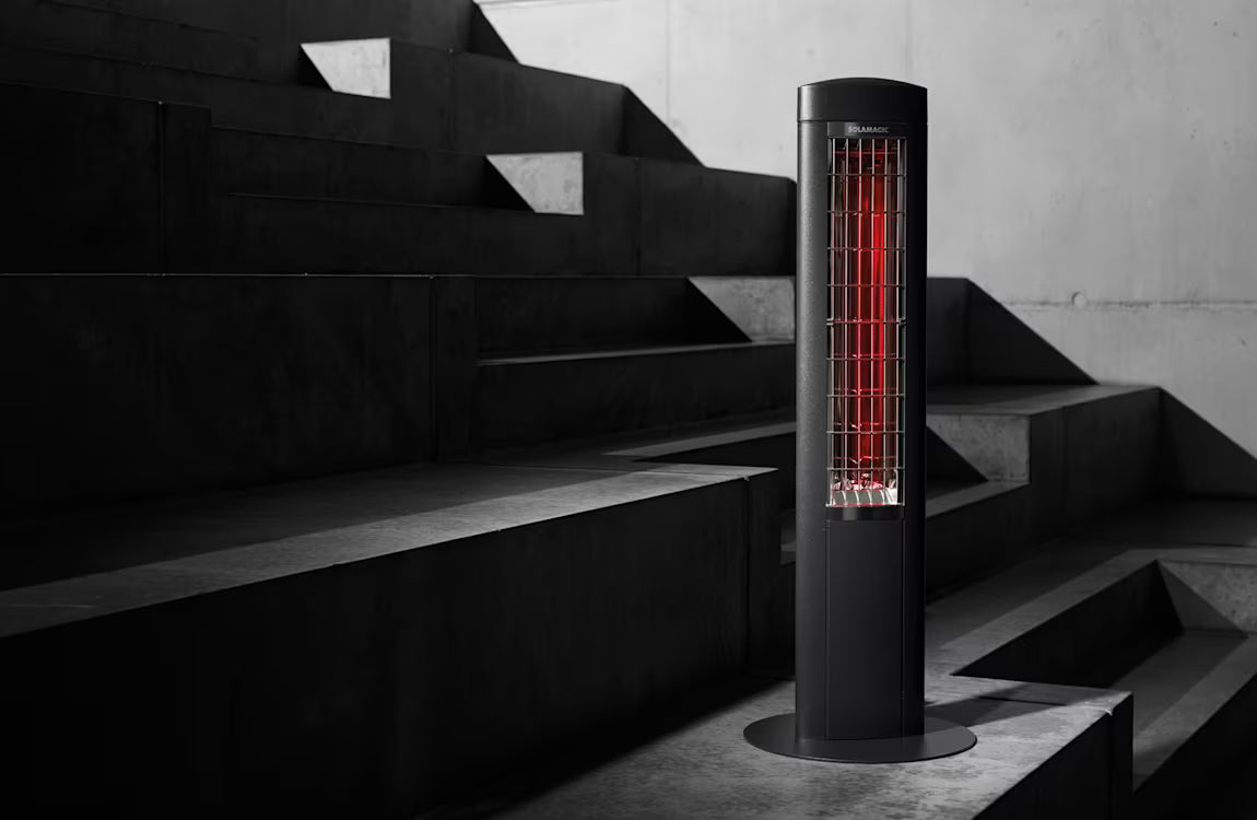 Solamagic FREE+ är en fristående infravärmare som levererar behaglig värme utan ljus – utvecklad för dig som vill ha maximal flexibilitet och en diskret premiumupplevelse i skyddade utomhusmiljöer.