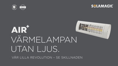 Hvis du ønsker en infrarød varmeovn, der giver behagelig og behagelig varme i udestuen, vinterhaven eller på overdækkede terrasser, hvor der ikke er vind, er AIR+ 2000 det rette valg. Du får Solamagics patenterede og unikke High Performance ZeroGlare®-teknologi, der omdanner den tilførte energi til varme i forholdet 1:1. Det betyder, at den energi, der tilføres den infrarøde varmeovn, omdannes direkte til varme - intet spild og mere varme til dig. ZeroGlare®-teknologien sikrer, at den infrarøde varmeovn ikke udsender noget rødt restlys.